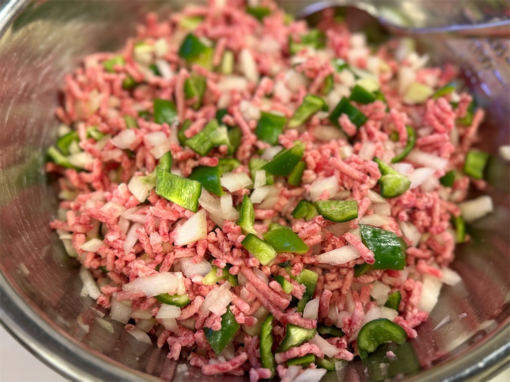 これは次女が以前「ハンバーグにピーマンたくさん入れると美味しよ」と言ったのがきっかけで、実際作ってみると、これはピーマンの肉詰めに近いぞ!となり、さらにピーマン増量ハンバーグを作るようになりました。